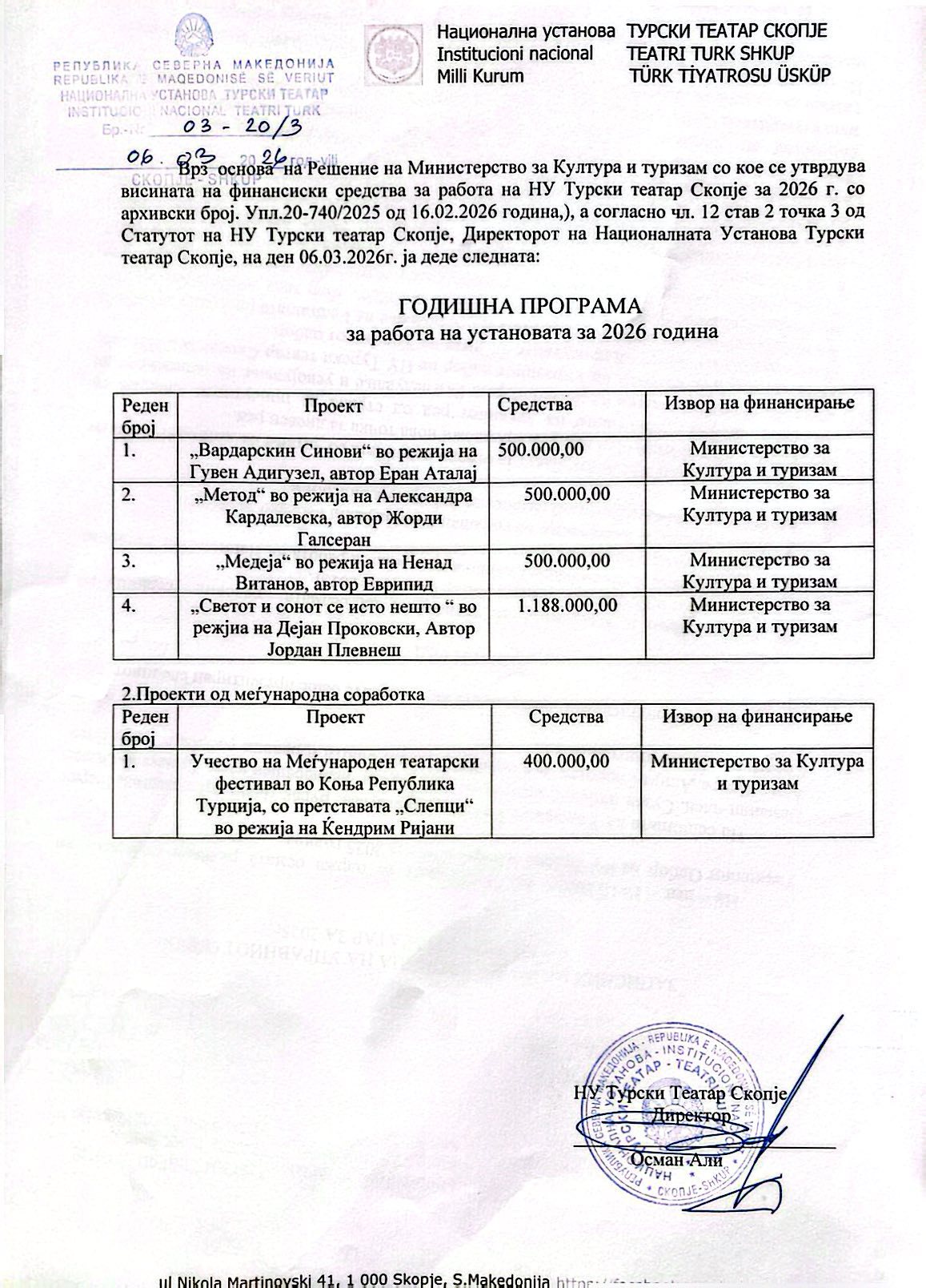 *Tüm gösteriler, Makedonca dilinde çeviri ile yapılmaktadır.